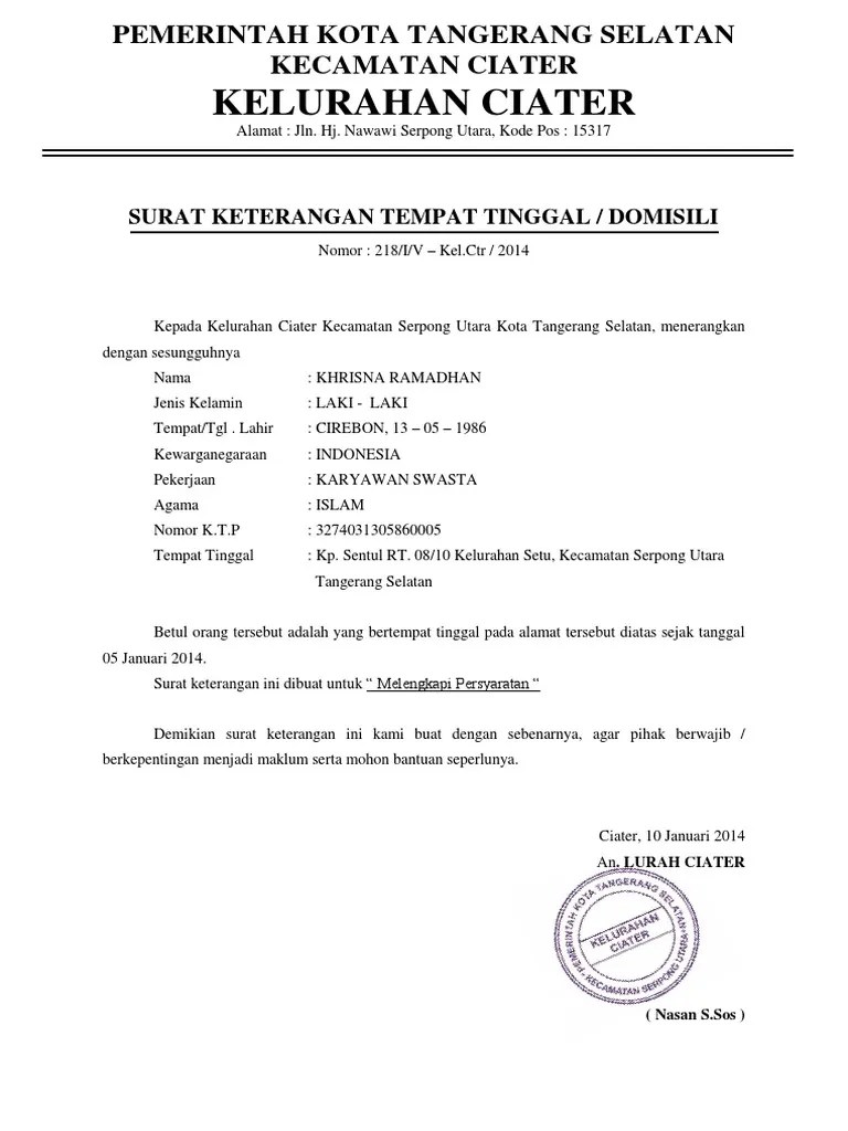 Alamat Domisili Surat Keterangan Domisili Tempat Tinggal - Contoh Surat Pernyataan Domisili Tempat Tinggal Nusagates - Syarat dan cara membuat surat pindah domisili.